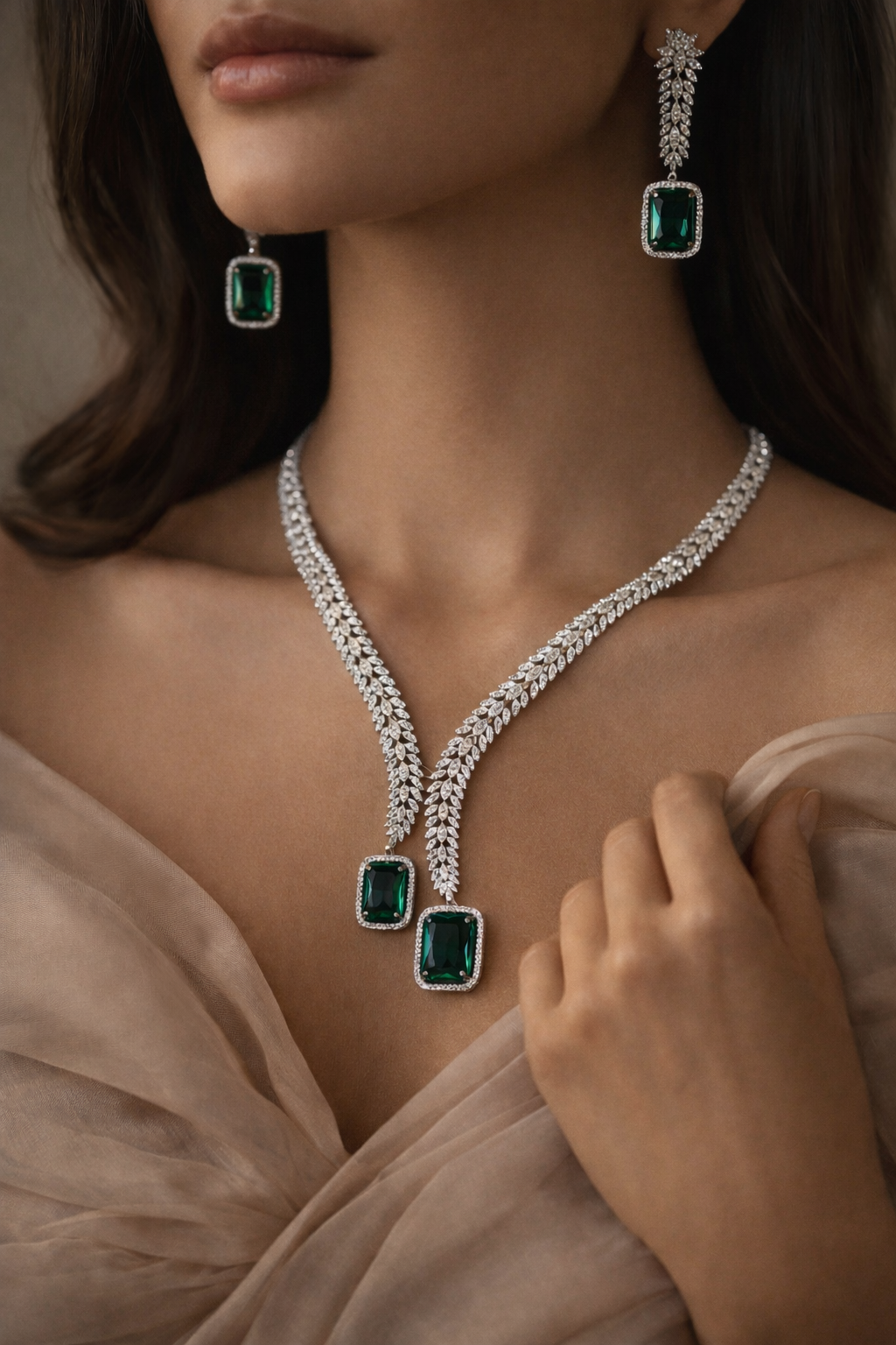 Paired with matching earrings, this set is both statement and subtlety - a modern heirloom that embodies timeless beauty through craftsmanship, balance, and light.