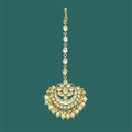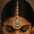 Delicate yet captivating, Naqsh is a teeka inspired by the serene glow of moonlit nights and timeless bridal traditions. A graceful trail of Polki-set drops leads to a crescent-shaped centrepiece, where luminous stones are arranged in a harmonious floral motif. Finished with soft pearl hangings that sway gently with every movement, the design frames the forehead in an aura of quiet elegance.