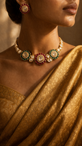 Elegant and timeless, the Noorva Jaipur Kundan Set is a tribute to the finesse of traditional Indian craftsmanship. Featuring finely set Jaipur kundan stones, this piece captures the soft, regal glow that defines heritage jewellery.
