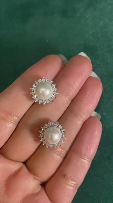 Encircling each pearl is a delicate halo of handpicked zircons, precisely set to enhance brilliance while preserving the softness of the design. The interplay of light between the pearl and the surrounding stones creates a subtle, captivating shimmer that feels both graceful and enduring.